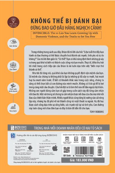 Bạn hãy đọc nó, hãy lan tỏa giá trị của nó đến mọi người trong xã hội, để chúng ta có thể hướng những bước chân mình tới một xã hội tốt đẹp không còn nạn bạo hành gia đình! Không thể bị đánh bại chính là chất xúc tác cho sự thay đổi trong cuộc sống của hàng triệu người lớn lên với bạo hành gia đình. Cuốn sách đưa ra một lộ trình đầy thuyết phục để làm dịu đi những vết thương trong quá khứ, là niềm tin để sống một cuộc sống như họ đã hằng ước mơ.