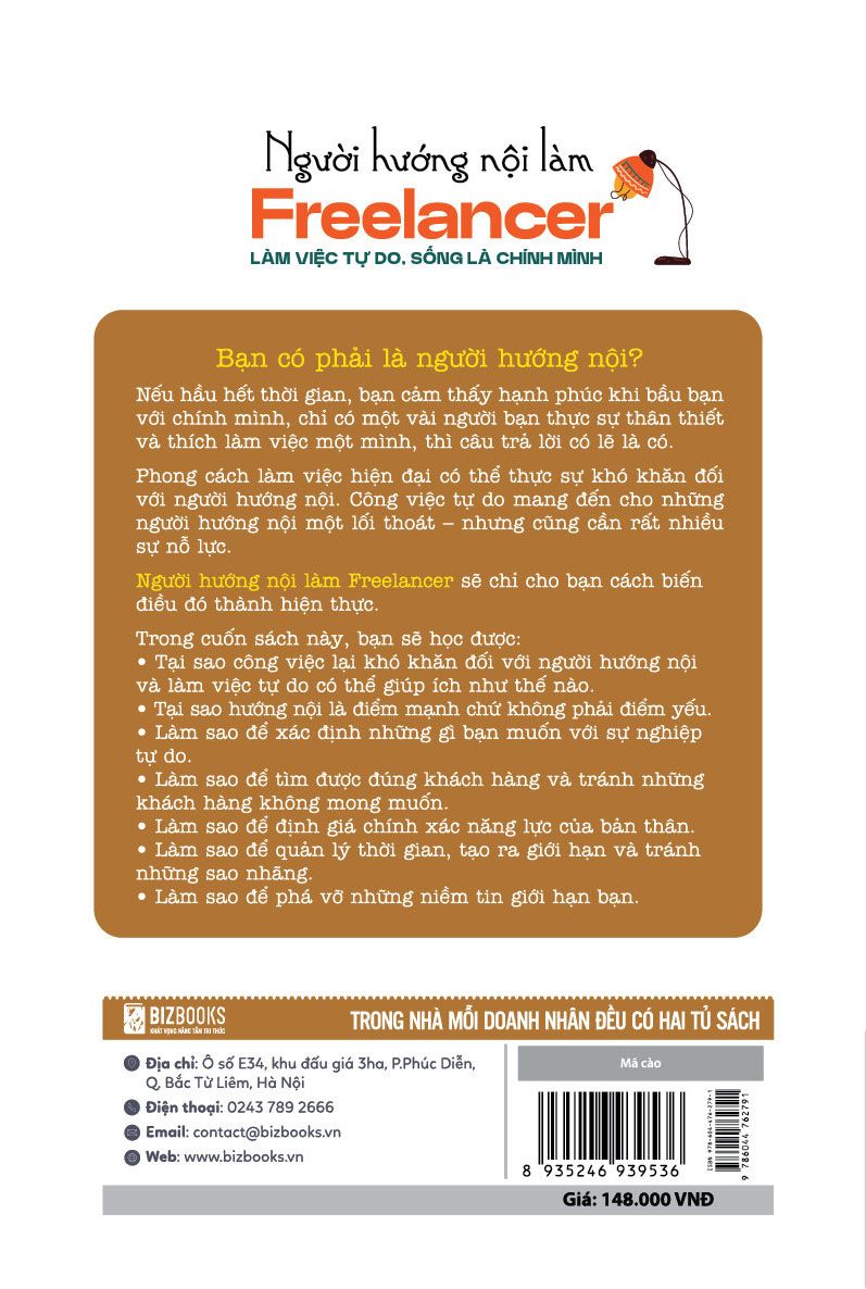 Cuốn sách “Người hướng nội làm Freelancer: Làm việc tự do, sống là chính mình” sẽ cho bạn một lối thoát, biến bạn trở thành một người làm việc tự do thành công khi bạn sở hữu tính cách hướng nội. Cuốn sách giúp bạn hiểu được vì sao hướng nội là điểm mạnh thay vì điểm yếu, xác định những gì bạn muốn trong sự nghiệp của mình, xác định năng lực của bản thân và có định hướng đúng đắn.