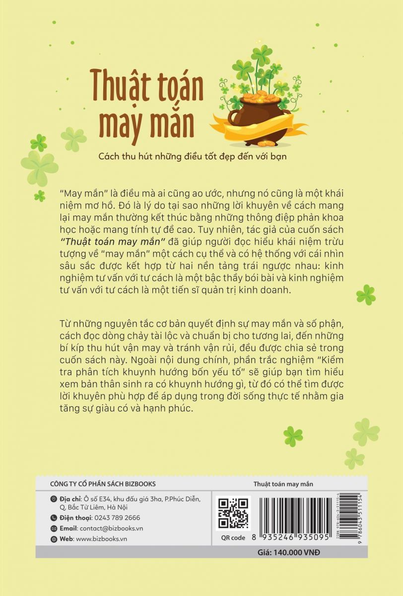 Từ những nguyên tắc cơ bản quyết định sự may mắn và số phận, cách đọc dòng chảy tài lộc và chuẩn bị cho tương lai, đến những bí kíp thu hút vận may và tránh vận rủi, đều được chia sẻ trong cuốn sách này.